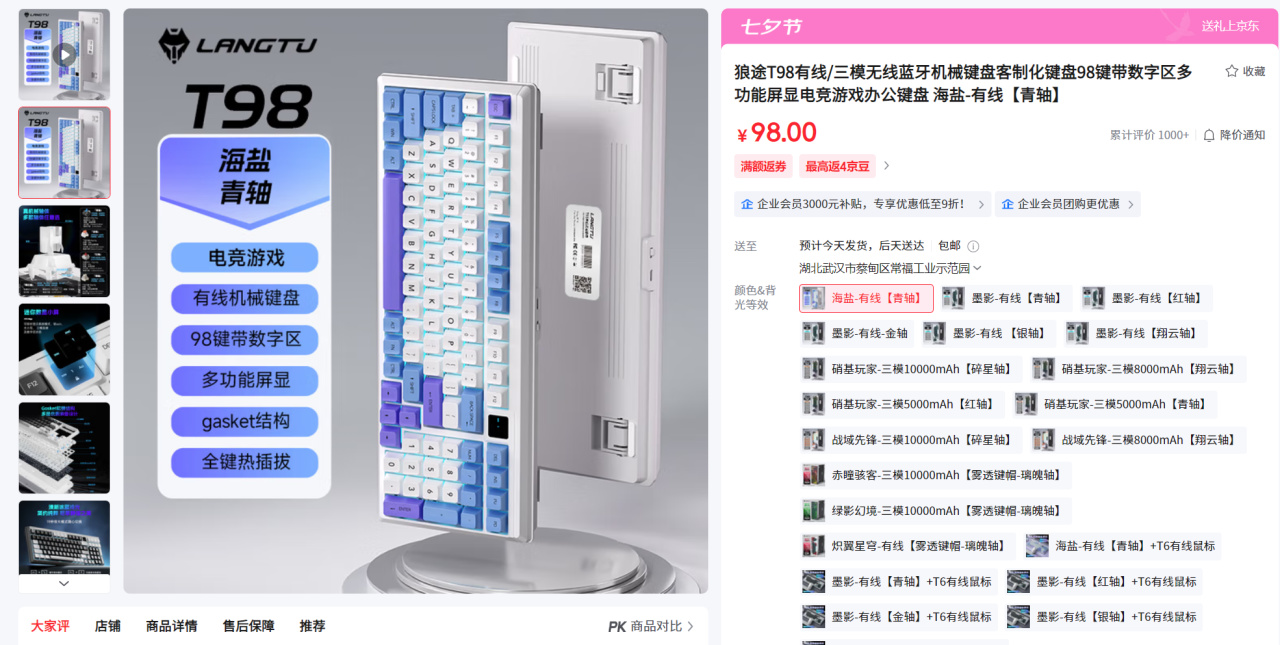 其实也有卡在99元的键盘,但是要不是耍猴没货,要不是还没LT84强,想想算了吧