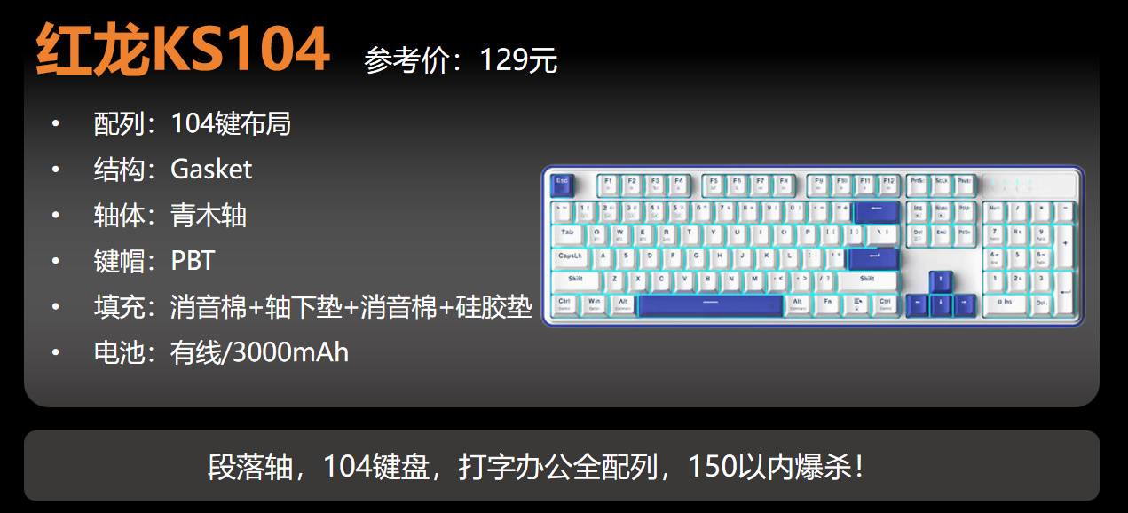 依靠大电池和PBT键帽还有不错的赤兔轴,几乎横扫150元价位段。