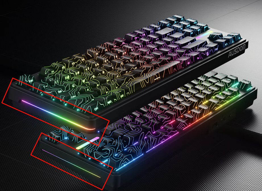 飘带+灯箱,搭配个不错的轴体。但是直到我拿到手才发现它居然是68配列里少有灯箱和旋钮的。