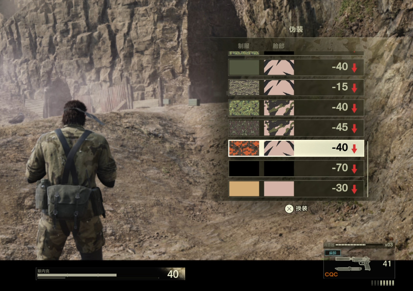 再比如食物中毒时,除了服用消化药这种常规的解决方法外,还可以在主菜单的人物界面疯狂转动Snake的模型,这样当退出菜单后,Snake就会开始呕吐,进而把有毒的食物吐出来,完成解毒。