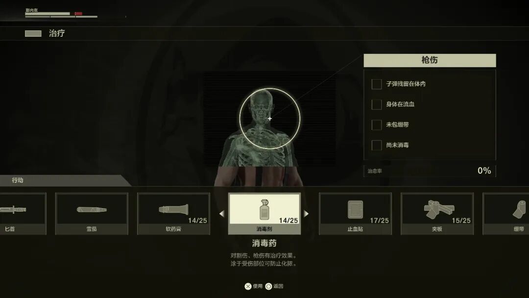 比如游戏的生存系统,玩家必须时刻关注随时间流逝而降低的“体力值”,一边躲避敌人的同时一边猎取食物,偶尔还要承担吃坏肚子中毒的风险;受伤之后也必须针对不同伤口使用不同的医疗道具才能痊愈: