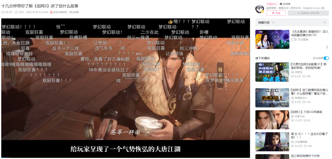 在不知不覺中,《劍網3》的同人作品在各大平臺上形成了種草效應。玩家們出於對遊戲劇情和人物的喜愛而進行同人創作,而因同人作品被種草的玩家自然也更容易沉浸在遊戲所塑造出的武俠世界中。