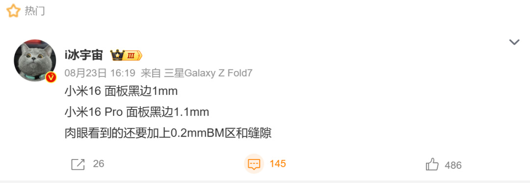 更火上浇油的是,你引以为傲的 1.2mm 超窄边框,很有可能刚露头就被小米 16 的 1mm 边框给秒了。