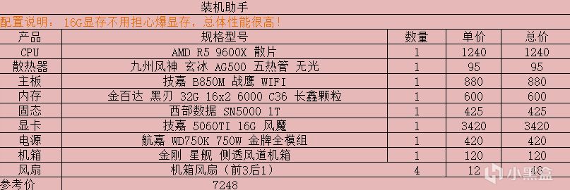 這套9600X+5060TI 16G的搭配也是很多人選擇的,性價比也很不錯。