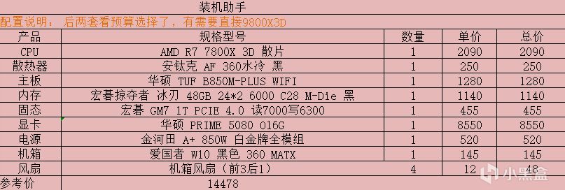 那麼正片就開始了,再次強調,這裏的配置主打性價比,當然質量上不會說很丐,確保能用的情況進行推薦,配置上還是僅供參考,有問題也歡迎指出。