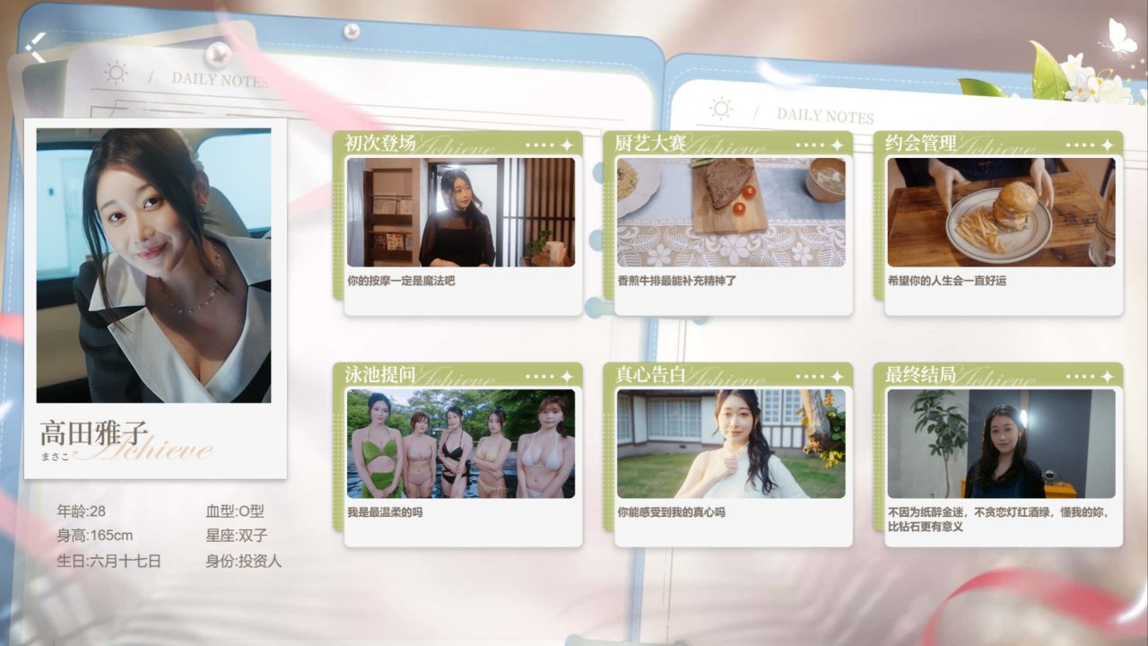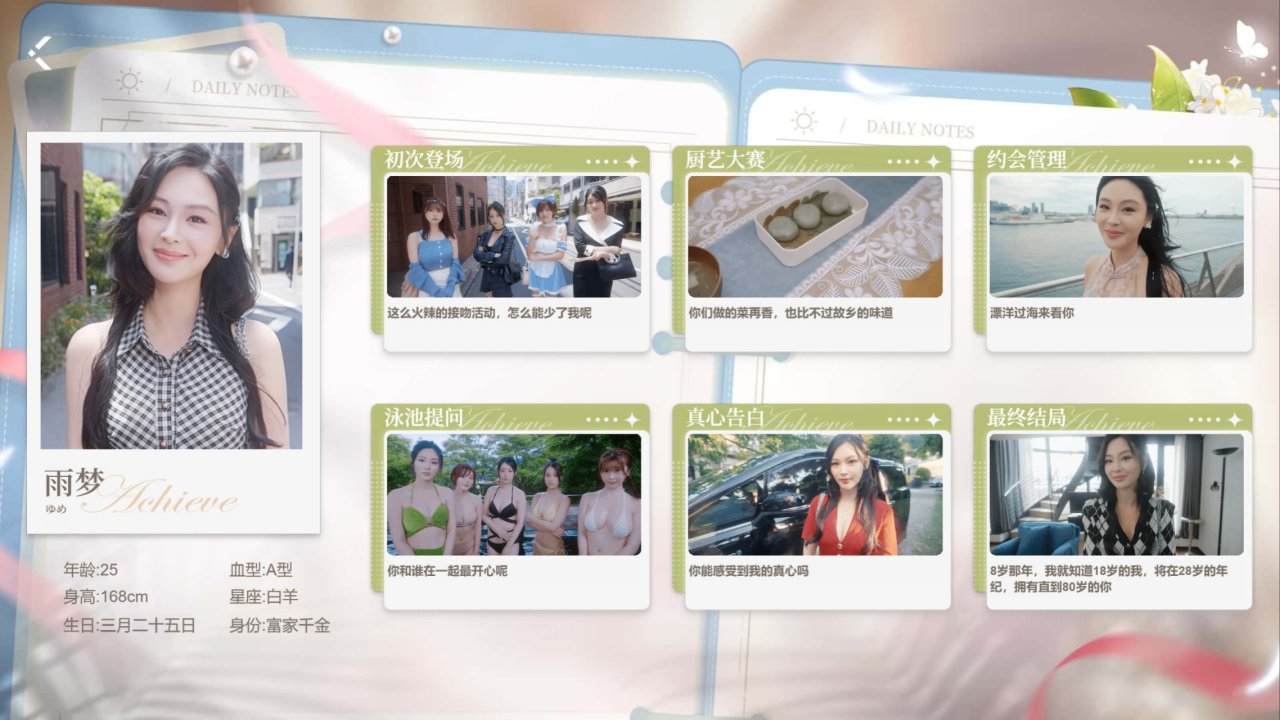 这个成就是在安排约会日程时,将五个女主分别放在第一位,需要回档进行五次选择