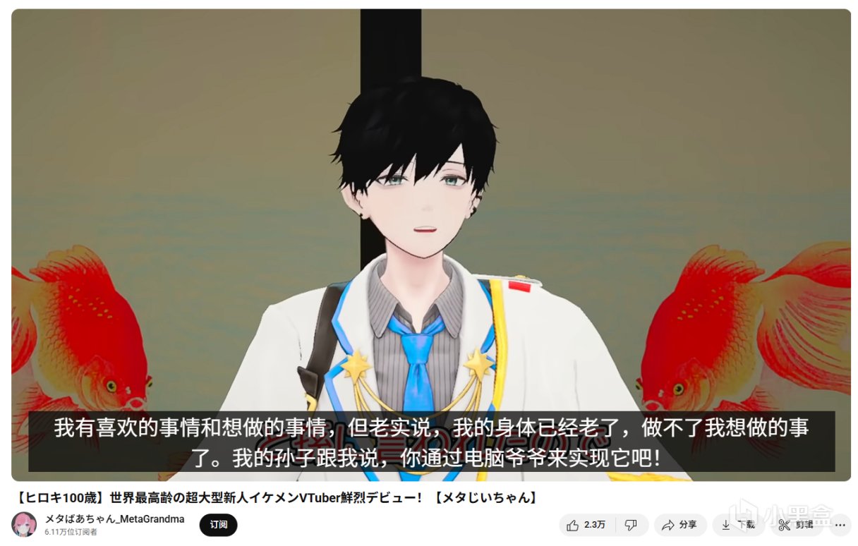 當然,平均年齡80歲也遠遠不是這個企劃的極限。很快,“世界最高齢VTuber”的記錄再次被“元宇宙奶奶”企劃刷新。但正如魔法少女系列皮膚裏有伊澤瑞爾一樣,“元宇宙奶奶”裏也可以有爺爺。這位名爲“Hiroki”的帥哥在出道那年已經100歲,還是一貫的“孫子推薦”,一貫的精神老人嗓音,很難不令人感到震驚。