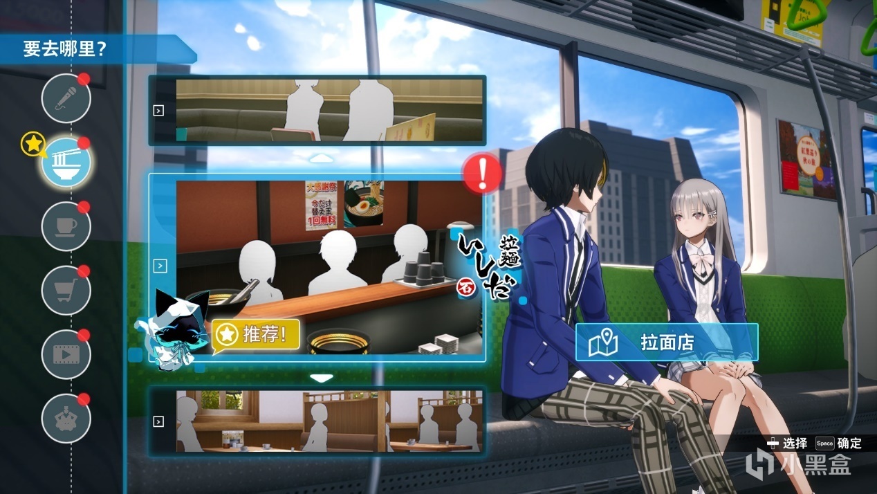 而培養好感的過程可能也是由於劇情推進非常快,基本就是約會兩次就快速升級,期間從電車上的對白逐步可以到各個區域如卡拉ok、電影院、電玩店等來進一步牽扯話題了解彼此,除了可以打開人物心結如人氣偶像或花臺上臺下的兩面無奈外更重要的還是技能點數,是的,除了男主是靠等級來博得點數進行技能樹解鎖,其他人全靠它,這也使得玩家的隊伍也是與其緊緊圍繞。