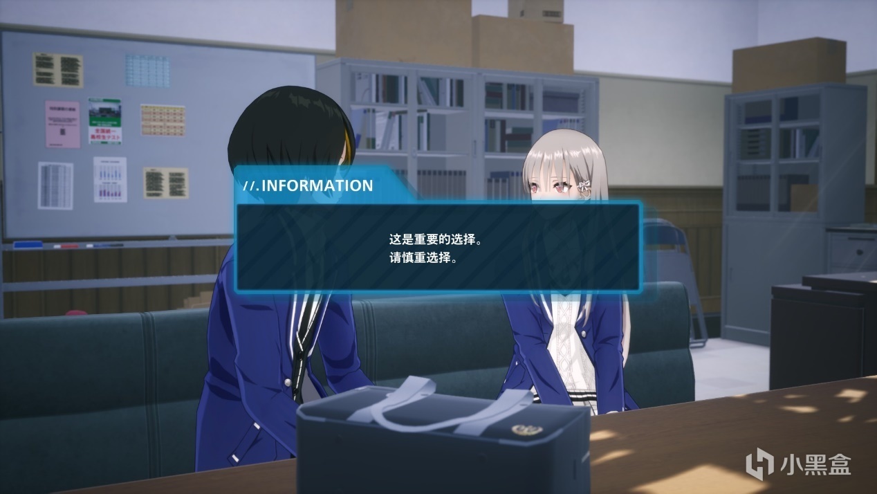 而隨着推進到接近終章,主角的身份也是最終得以揭曉,這也是咱對貪慾有進一步的感觸,其作爲未來世界下本體通過一代貪慾各種迭代可能是第九代的貪慾,做的是改變世界線拯救的重任,這也直接把校園故事上升到拯救世界了,誰讓咱就喫這一套呢,且遊戲前面也是一直在鋪墊,V的託夢,異常只能貪慾開啓進入等等。衆人也是對主角身份揭曉有着諸多反應,可惜本作就跟閹割了一樣,沒有進行小劇場描寫,可以說是非常可惜,沒有很好地渲染氛圍以及衆人對貪慾態度的不斷改觀,就直接接受了。