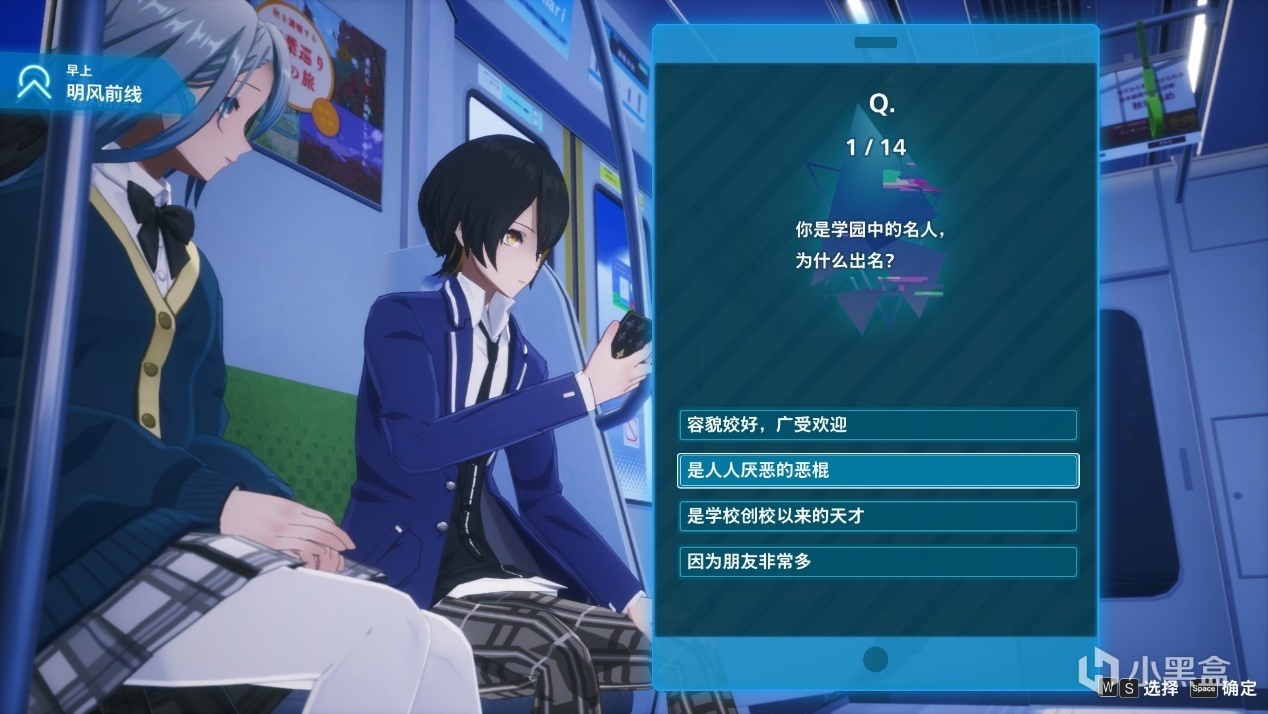 初見還挺有意思,但多來幾次就很無聊了,反反覆覆都是那些,主要也是故事限制在校園之中,以及前面的章節套路化劇情也很嚴重,沒有後續的“昇華”真有點不得勁,這也歸咎於遊戲很多內容沒有發散化,如各種信息真就只是信息,不會有一些劇情聯動或者助於玩家來了解遊戲世界觀、碎片化收集等,真就是一天過一天,委託、失物、信息等刷新從頭來過,即“沒營養”,對咱而言,此乃一大遺憾,畢竟這乾巴巴的本作式麪包真啃完了qaq。不過男主的路人緣分是相當不錯,各種對話下都是滿滿好感展現,潮男再現。