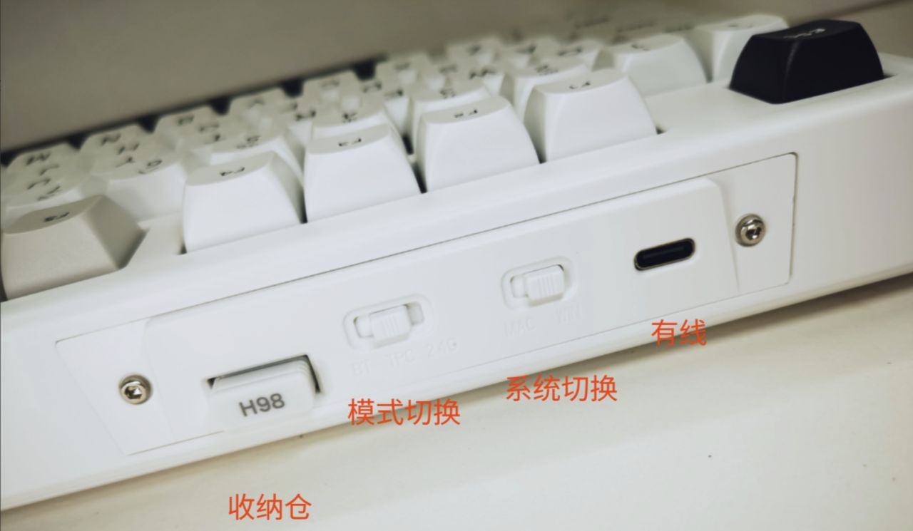 H98云栖白-极速银轴,自带防尘罩,打开盒子里面包括:拔轴器、Type-C 数据线、2.4G 接收器、说明书