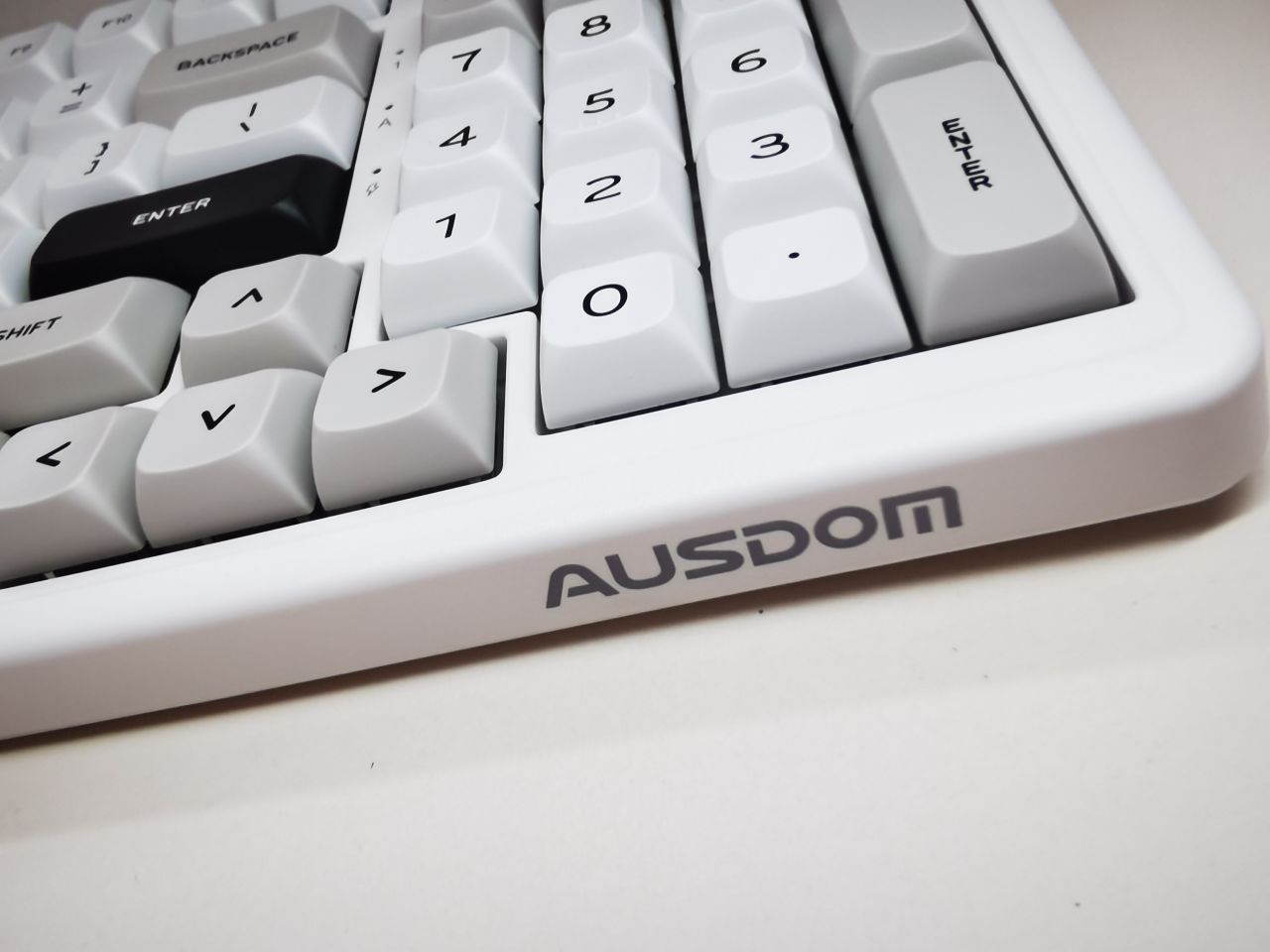 因为当时考虑的是办公更多,所以挑了一款朴素风格的阿斯盾键盘。整体看上去键列整齐,98 配列设计,自带的小键盘适合数字办公时使用,只打游戏的话其实更多使用不带小键盘的68或者81键位的键盘。
