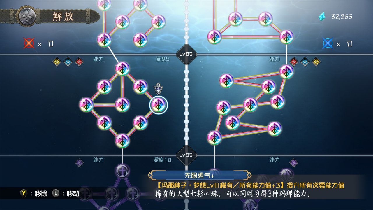 新加入的解放之路非常类似隔壁轨迹系列的回路系统,亚特鲁和卡嘉分别拥有各自的解放之路,随着角色等级的提升,能够不断解锁更多的链子跟节点,这些节点能嵌入不同属性的玛娜种子为角色带来属性数值方面的增益,如果同个链子的玛娜种子是同一种颜色还能触发各种被动效果,大体可分为红黄蓝三色,代表的分别是攻击,辅助,防御。中后期还能解锁彩色、黑色以及加强版新增的白色珠子,彩色可以同时附带红黄蓝三种被动,黑色则是牺牲防御跟生命值大幅增加输出,白色没有被动效果但数值非常恐怖。