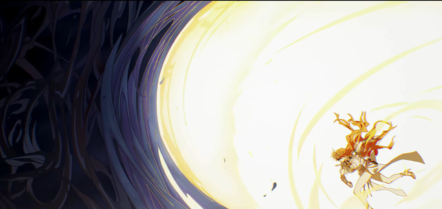 一無所有的奧古斯塔失去了和鳴式抗爭的力量,在自我消亡之時,那些獲得“生命”的角鬥士英靈,反過來將自己的希望託付給了奧古斯塔,奧古斯塔在這一刻追上了命運,真切的把命運,一拳打爆!尤諾眼中奧古斯塔與英雄王重合的那身影,和一拳打碎黑潮的奧古斯塔“自黑色浪潮中崛起”,真真正正成爲了預言中的英雄王,將七丘的戰鬥推上了最高潮。