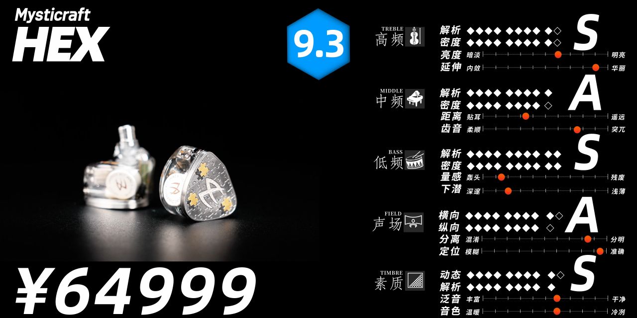 Mysticraft HEX,LEE在離開Elysian之後建立新品牌的第一款旗艦。在這次測評的所有耳機來說,HEX和DIO的綜合素質解析,明顯甩開了別的耳機半個檔左右,在單純的細節解析方面不會弱於旗艦頭戴系統。