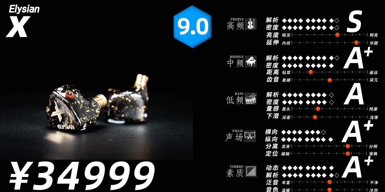 Elysian X,高頻很漂亮,滾降平滑,解析優秀,線條清晰。結像凝實細膩,揚升開闊華麗,泛音豐富音色優美。