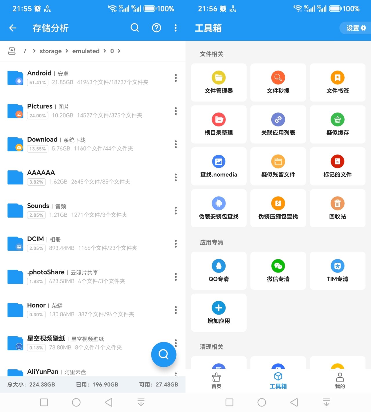 这是一个清理软件,主要是支持通过Shizuku来访问Android/data/以实现全盘扫描(需要设置里手动开启),顺带还有很多小工具