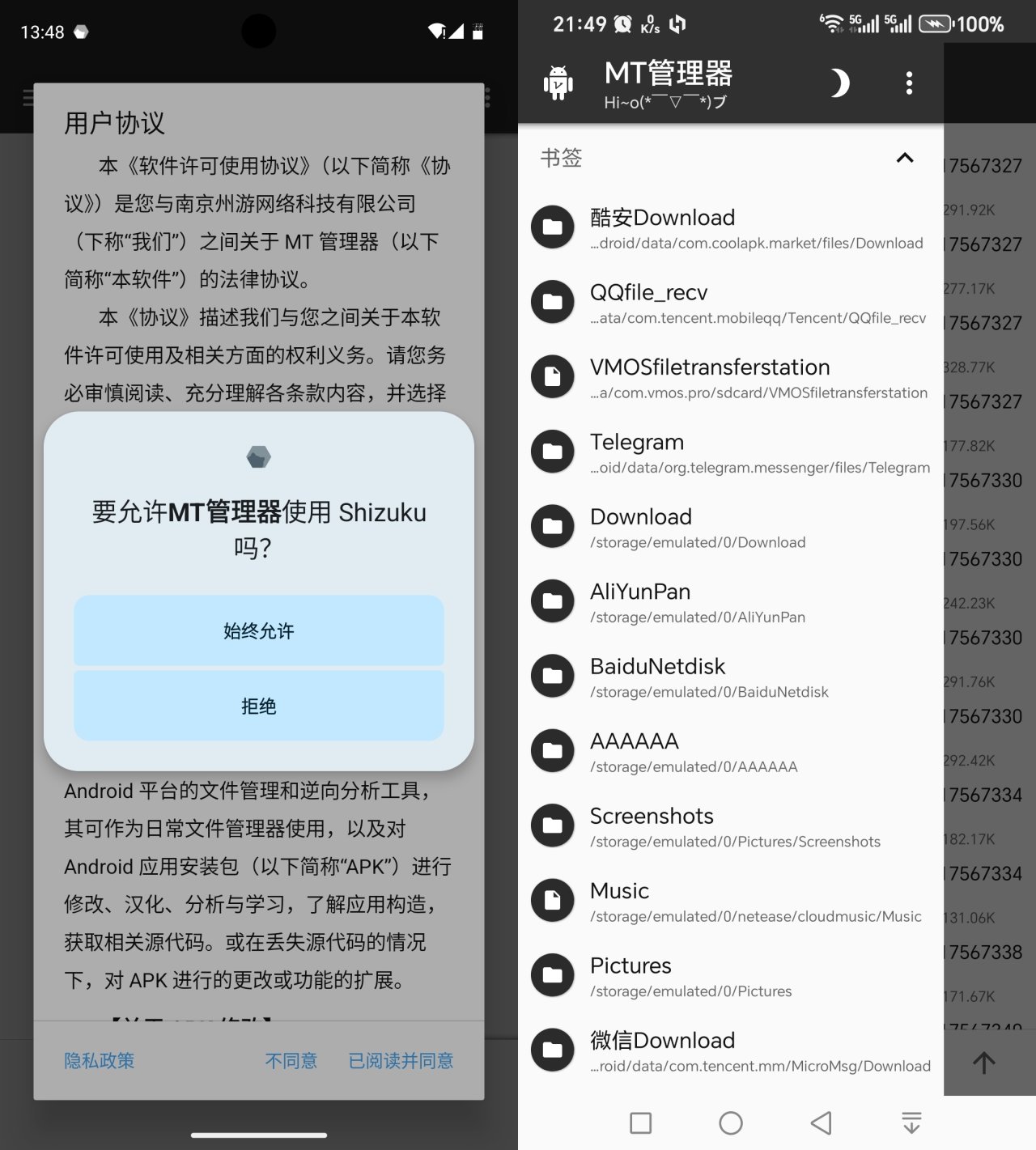 一个多功能文件管理器,可以添加常用书签方便找到文件。支持通过Shizuku访问Android/data/,因此可以方便地查看QQ微信等的下载文件。更多功能可以自己慢慢探索。