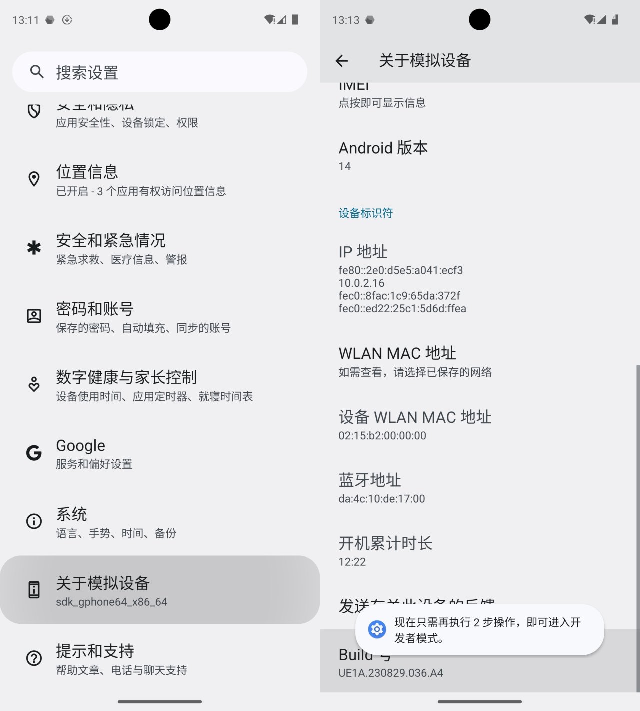 打开设置,关于手机,找到版本号/Build号,连续多次点击。