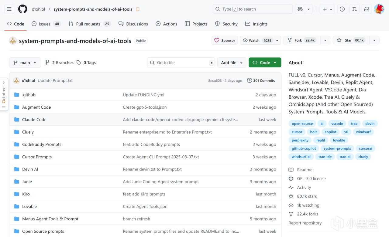 简介:该项目收录了大量 知名 AI 工具的系统提示词 与模型使用方法,方便用户在不同平台和场景中高效调用 AI 模型。内容涵盖商业、教育、创作等多领域,可显著提高 AI 输出的精确度和可控性。
