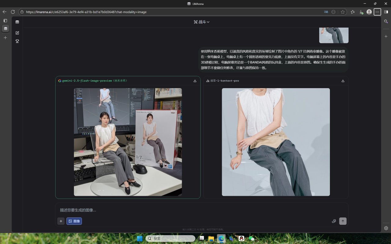 使用nano-banana model,以逼真的風格和真實的環境繪製了圖片中角色的 1/7 比例商業雕像。這個雕像被放在一張電腦桌上,電腦桌上有一個圓形透明的亞克力底座,上面沒有文字。電腦屏幕上的內容是手辦的3D建模過程,電腦屏幕旁邊是一個BANDAl風格的玩具盒,上面的內容是原圖。確保生生成的手辦的面部細節不要做任何修改,儘量與原圖保持一致。