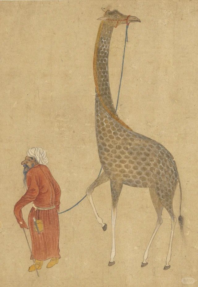更有意思的是,他還把海外萌寵帶回明朝:1414 年,榜葛剌國(今孟加拉)贈送的長頸鹿,被大臣們誤認爲是傳說中的麒麟,引得滿朝文武爭相圍觀,成爲當時京城最火的網紅動物。
