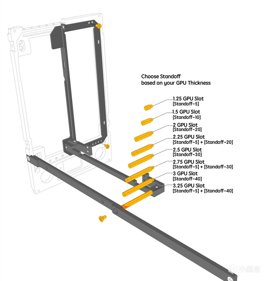 唯一一个难点,根据自己的显卡厚度选择螺柱安装偏移骨架。我的5070是SFF标准,用2.5槽的模式即可,使用30mm螺柱。