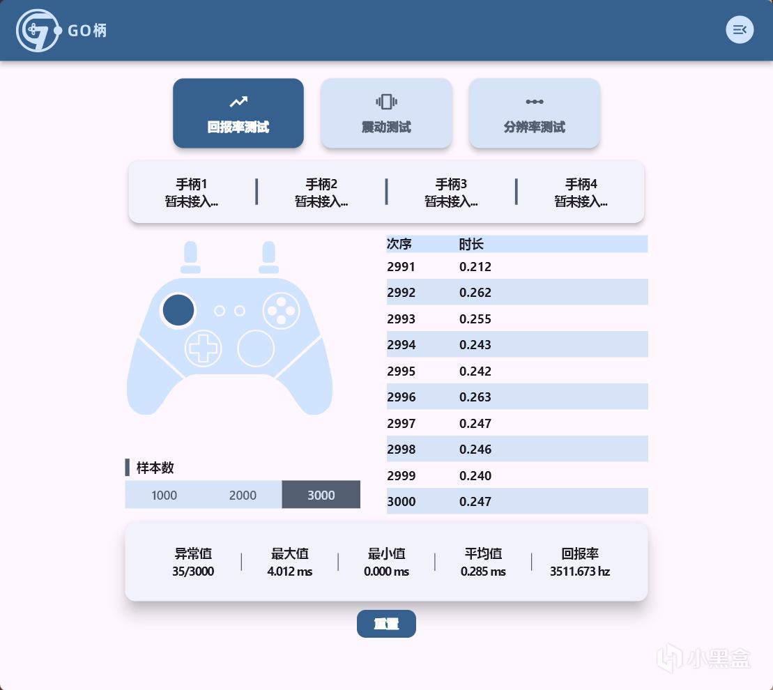 回报率方面同样恐怖,接收器模式我平均回报率是九百二左右,蓝牙模式是两百三上下,但是有线模式我平均能来到三千四,最高三千五百五,再搭配上上面说到了TMR摇杆和双切扳机,很难不怀疑终传是否会成为FPS手柄的最有力选择。