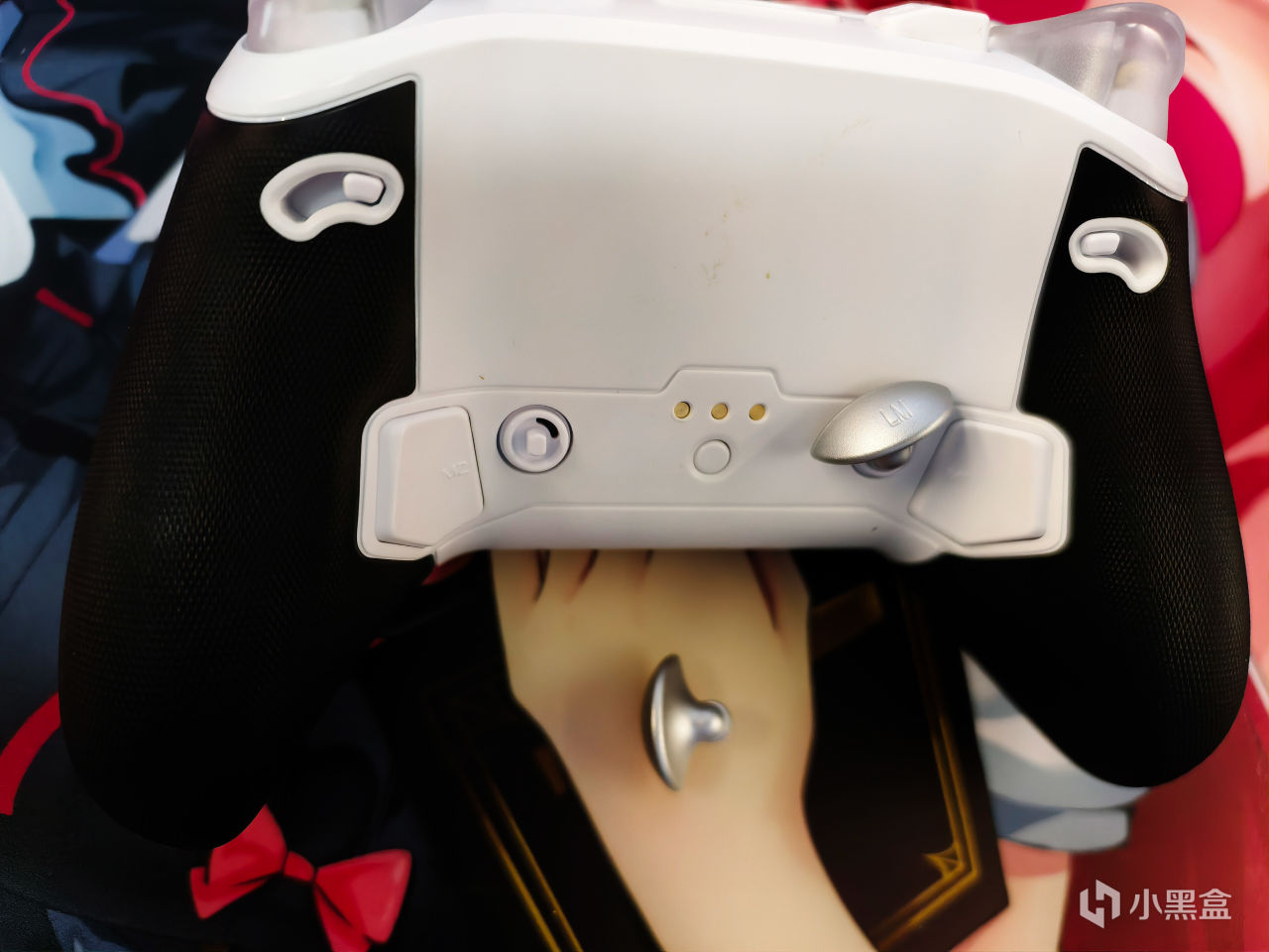 拓展键更是夸张,四个背键+两小肩键+左右摇杆旁边各一个,足足做了八颗。小肩键和手柄自带的背键均采用微动设计,手感很好,位置放的正常。欢乐豆背键要是不用力装下去会有点松,但是装进去后再多按两下会好很多,甚至拆下来的时候会吃力些。表面的拓展键其实会比较鸡肋,毕竟通常没那么多宏需要设置,而且也没其它拓展键好按,不过手感和反馈感也同样不错,而且有>没有,万一以后用得上呢?