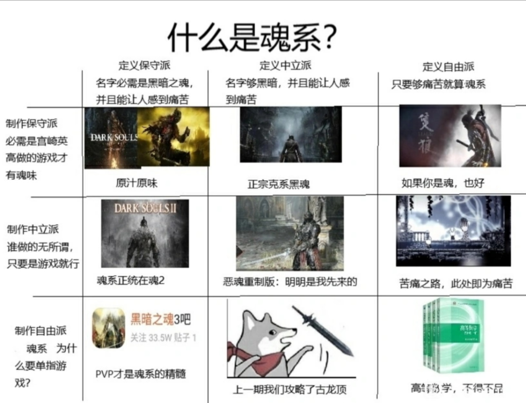FromSoftware自家的游戏尚且划分不清,那就更别提其他与之相似的游戏了。