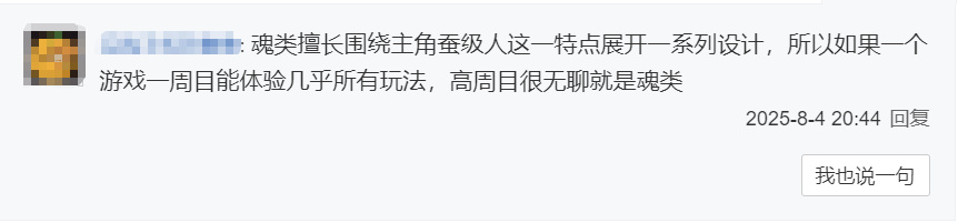 但对于“类魂游戏”这种宇宙的终极奥秘,网上不少人始终持反对态度,情至深处甚至还会附带一句“放你嬢的屁”。