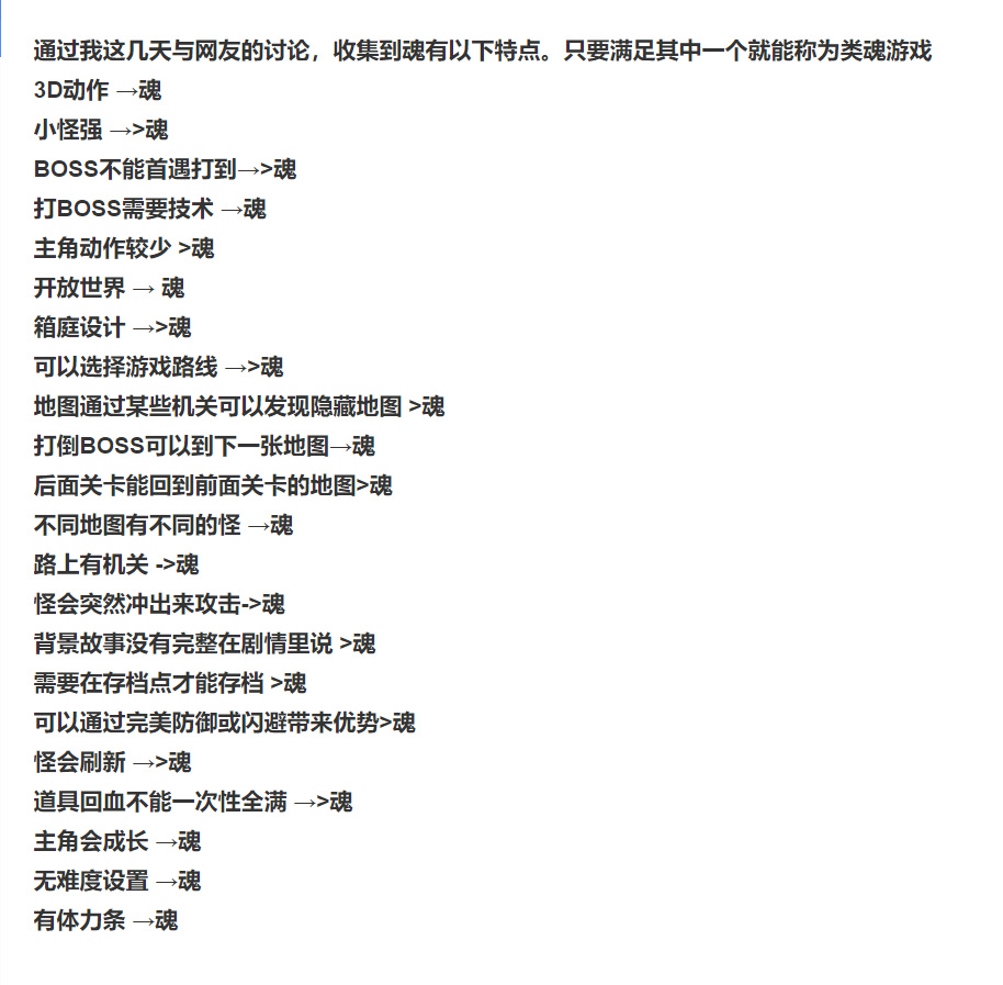当然,在经过好几年的类魂辩论赛后,所谓的“类魂游戏”也确实有几条认可度比较高的标准。