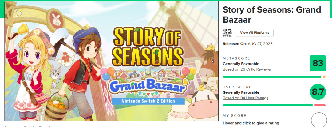《牧场物语》近十年的思路以“重制老作品”为主,但即便是有范本的前提下,也很难说有哪一作让人真正满意,也显得《风之繁华集市》的好评确实来之不易。