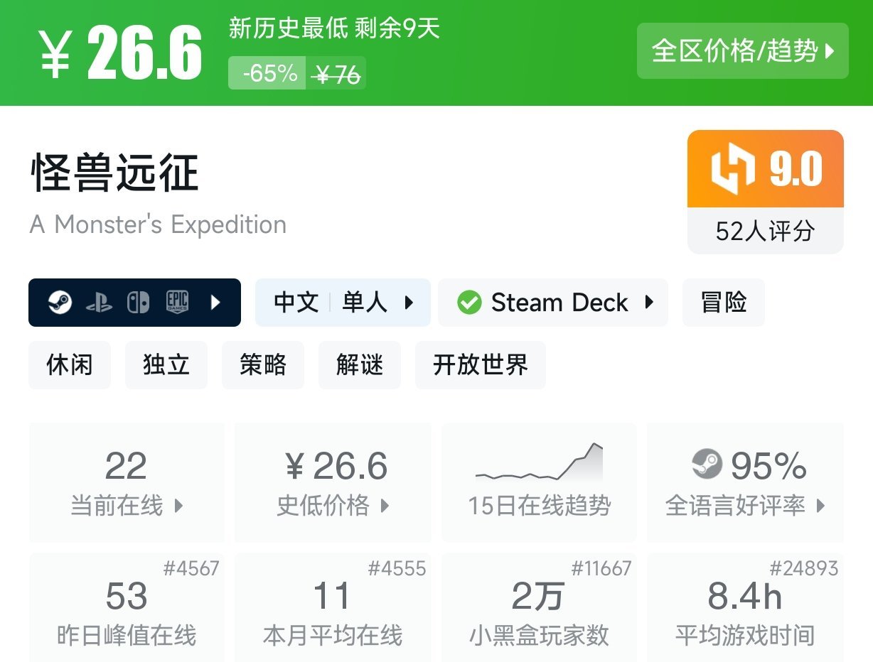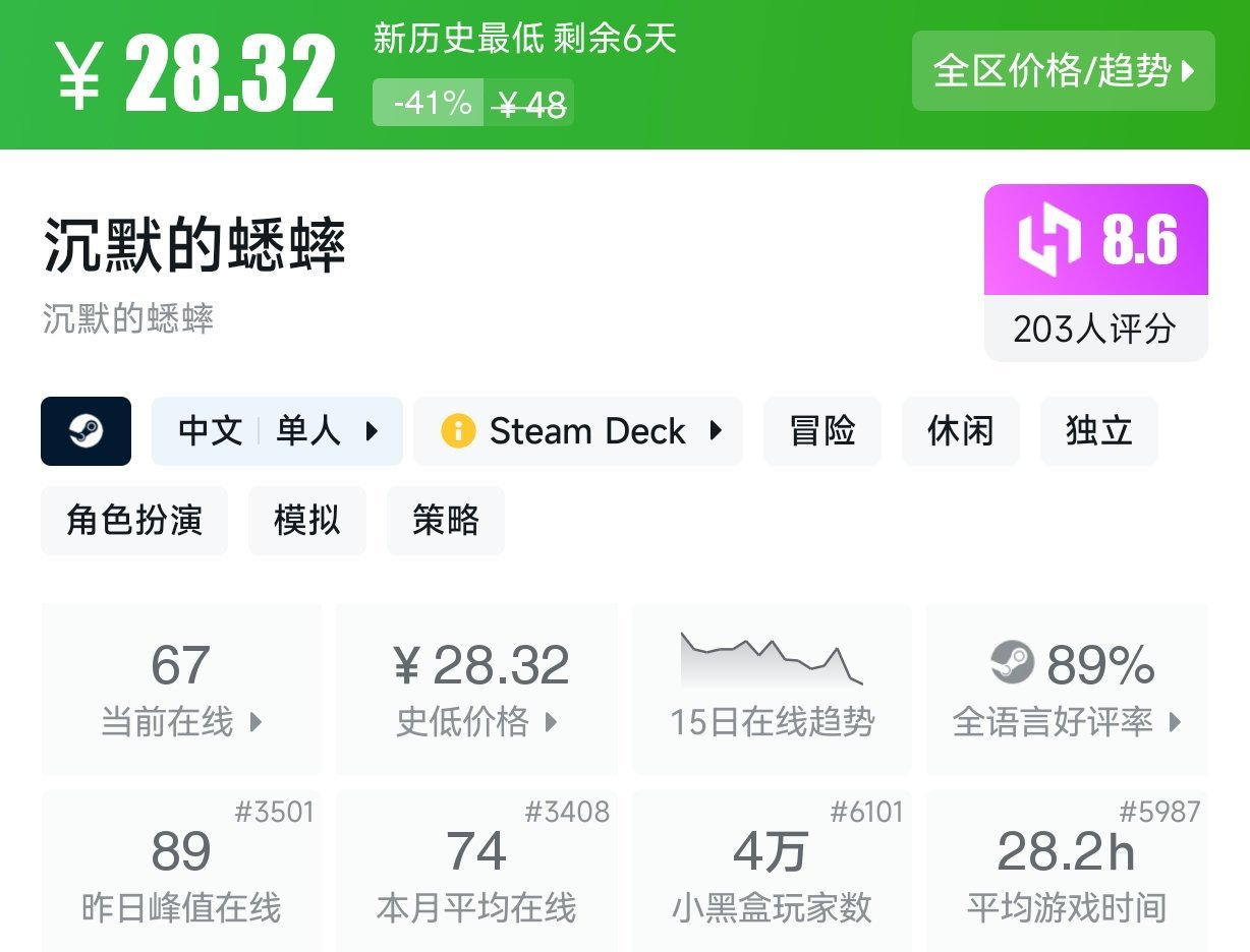 Steam特惠,今天給大家整理了27款新史低遊戲彙總,最近遊戲荒的小夥伴可以看看有沒有自己喜歡的遊戲,有喜歡的小夥伴不要錯過,抓緊入手吧。