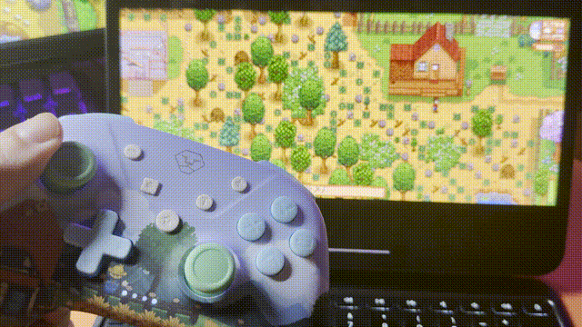 在 PC 上玩《星露谷物语》时,澳加狮洛可可手柄凭借其舒适的握持感和精准的按键反馈,让玩家在经营农场、与村民互动时操作更加流畅自然。比如在种植作物、收获果实的过程中,精准的摇杆操作可以让我快速选择目标地块,而清脆的按键手感则让每一次操作都充满了节奏感,让老乡人置身于星露谷的田园生活之中。