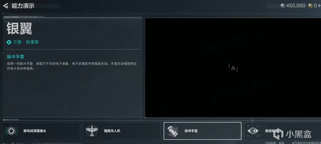 使敵方幹員的電子裝備,電子武器配件和瞄具失效。手雷還會摧毀附近的電子類兵種道具。
