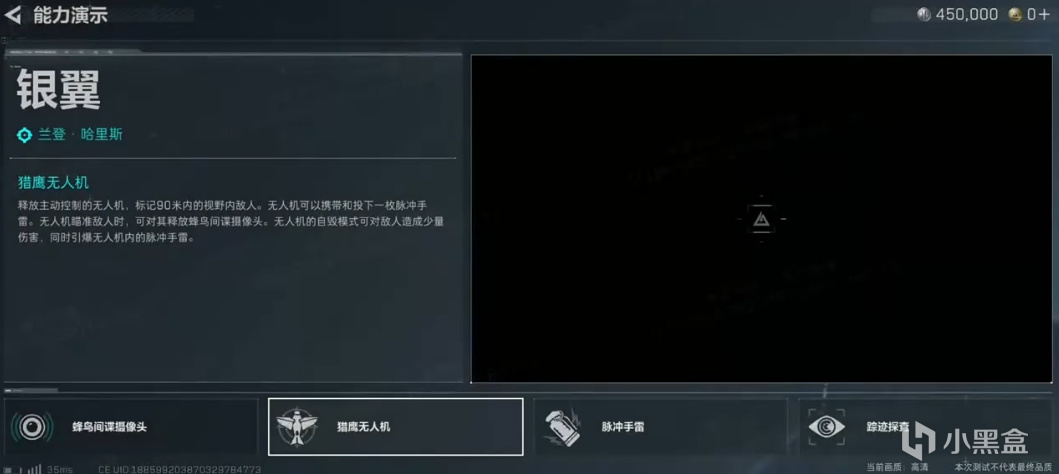 釋放主動控制的無人機,標記 90 米內的視野內敵人。無人機可以攜帶和投下一枚脈衝手雷。無人機瞄準敵人時,可對其釋放蜂鳥間諜攝像頭。無人機的自毀模式可對敵人造成少量傷害,同時引爆無人機內的脈衝手窗。