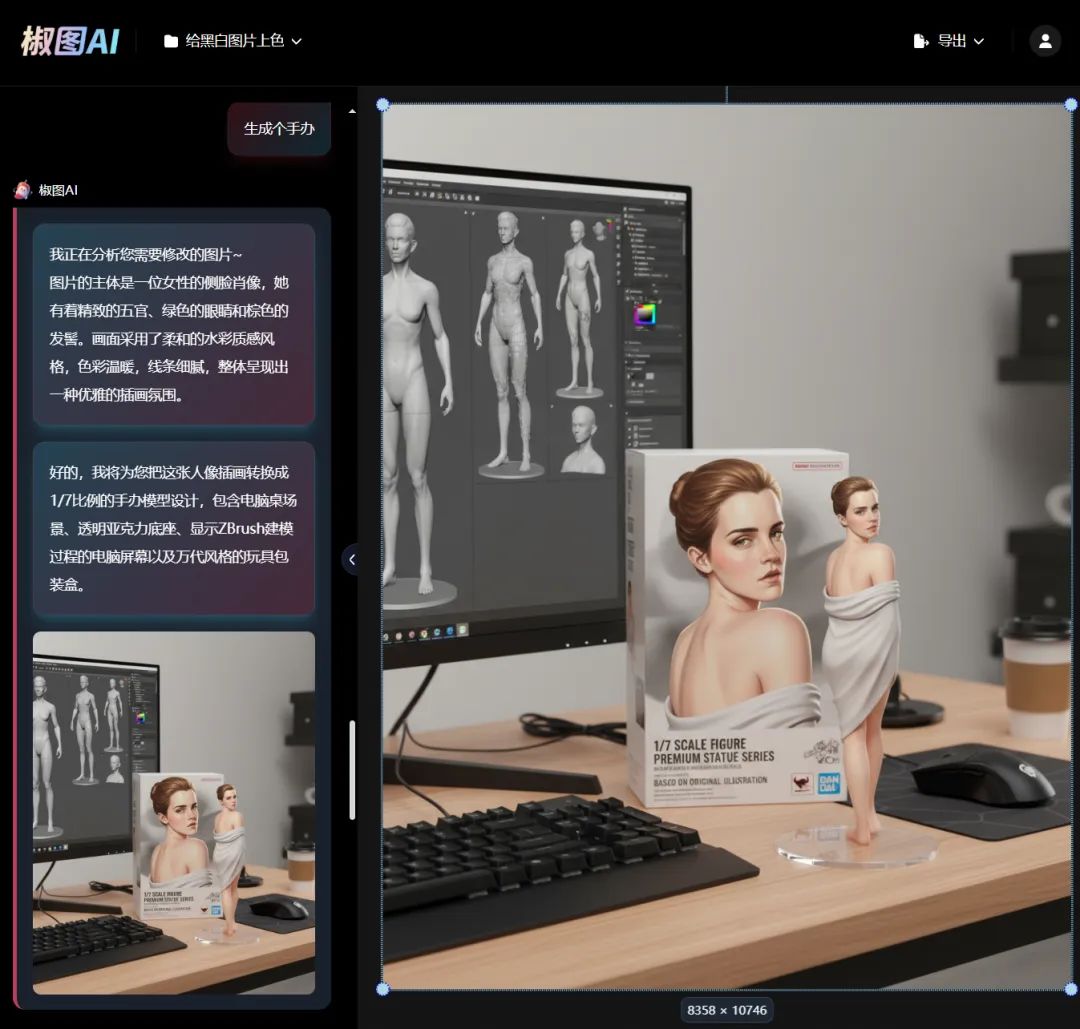 这里我上传了一张自己的照片,可以看到它很快就帮转成了手办,效果杠杠的