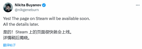 8月31日,开发商Battlestate Games的负责人Nikita Buyanov在推特确认《逃离塔科夫》将登陆Steam平台,并放出了一张Steam《逃离塔科夫》页面的示意图。“《逃离塔科夫》在Steam的页面很快就会上线!详情稍后揭晓。”值得一提的是,《逃离塔科夫》将于11月15日正式推出1.0版本。