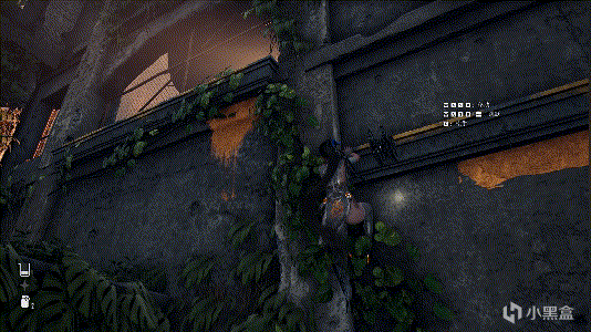 ②這裏是一個天井似的結構。中間是個矩形的大坑,放置了一些收集物(坑壁有跳躍點);其上是2條長繩,玩家可以藉此跳到對面的平臺。
