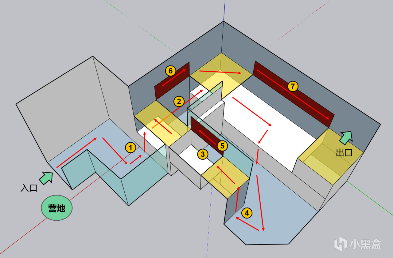 下面是這一段關卡的示意圖,整體還是比較緊湊和精緻的。