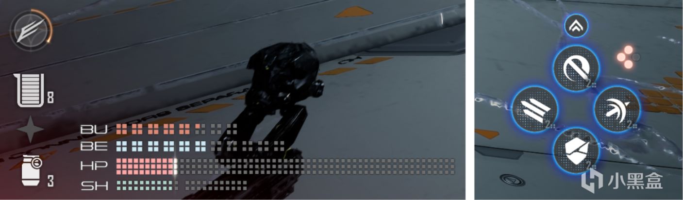 ● 攻擊、完美招架補充「貝塔能量」(圖中的BE)