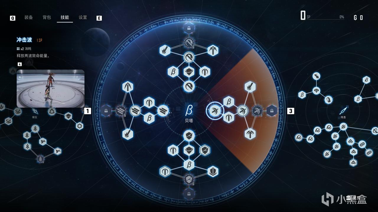 當β能量足夠時,可以釋放貝塔技能。遊戲設計了4種固定的β技能,直接按1~4進行釋放。