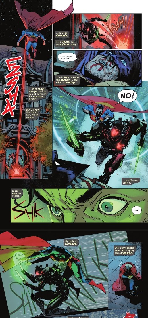 虽然说大超预判了故障保险有氪石,但也被故障保险预判了预判,除了手上的两把,背上还藏了一把氪石刀,又一次让大超光速下线了(好好好蝙蝠侠刊这样整大超是吧)