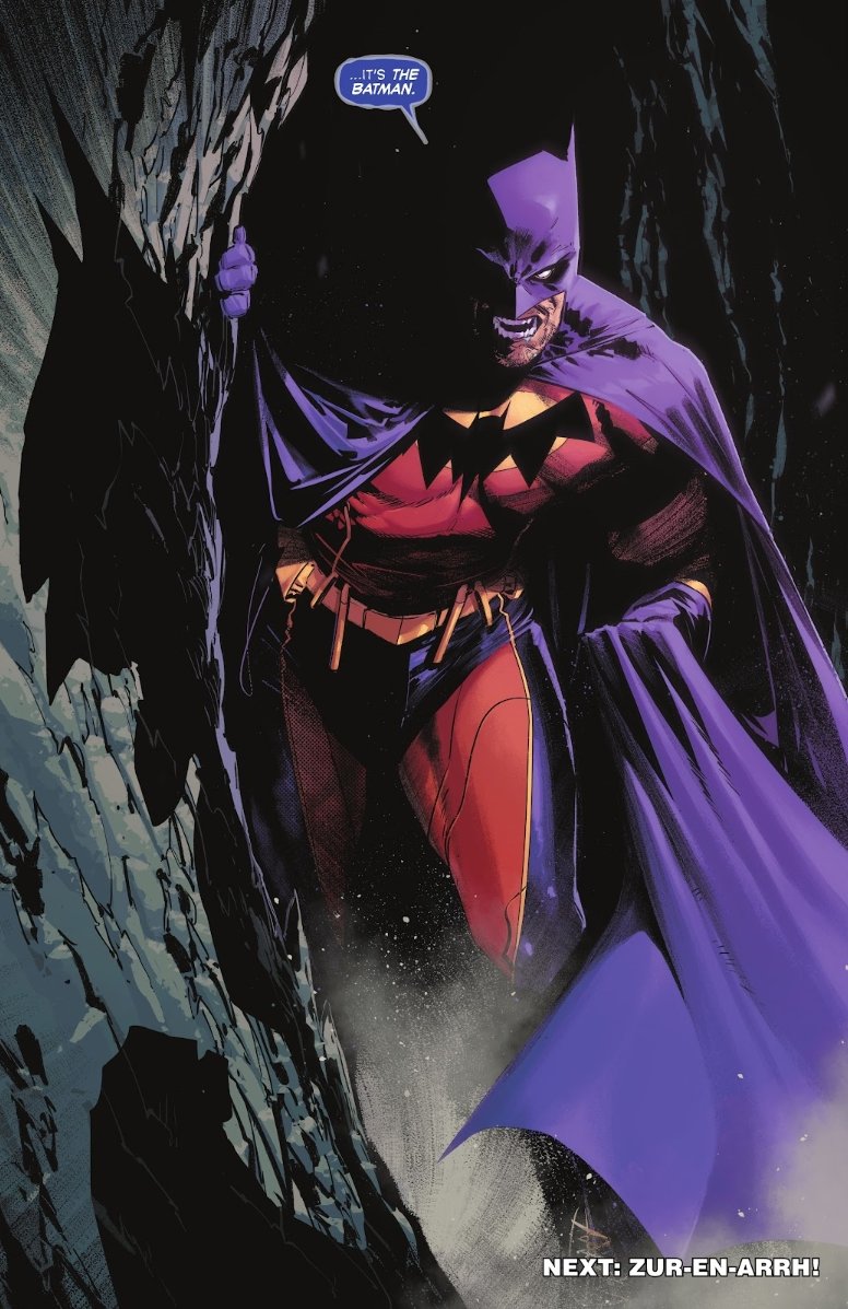 老爷来到洞中后,则神秘地进入了更深的洞穴中,等到他再度出来,则是我们很久不见的蝙蝠侠副人格——祖尔恩阿上线了。