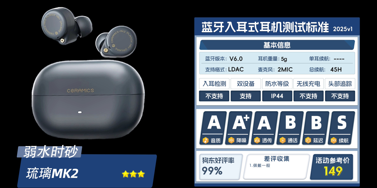 作为弱水发家起步最重要机型琉璃的迭代,琉璃MK2的确也不负众望的延续了前代的超高性价比。降噪佼佼,音质不错,透传出色,延迟够短,续航超长。