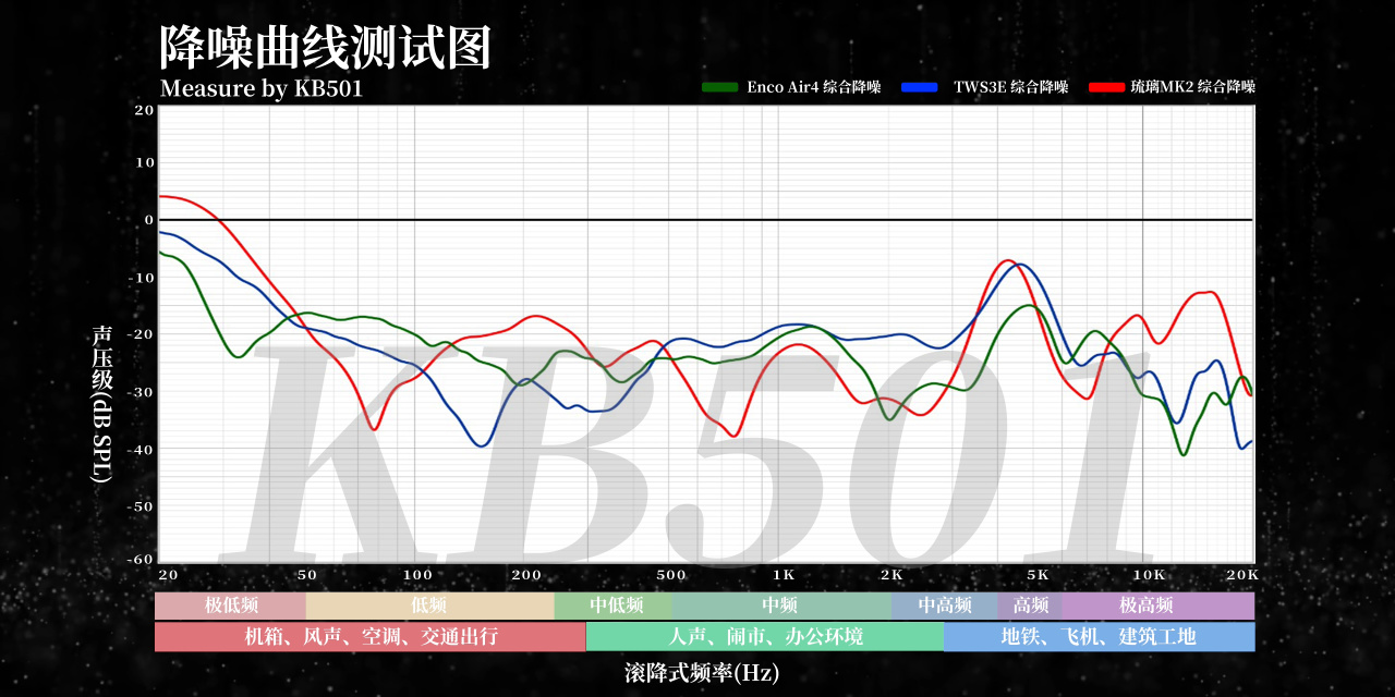 横向对比同价位的最热门竞品就可以看到,琉璃MK2的降噪,尤其是中频降噪还是有着一定的优势,对降噪需求较高的同学可以选择这款