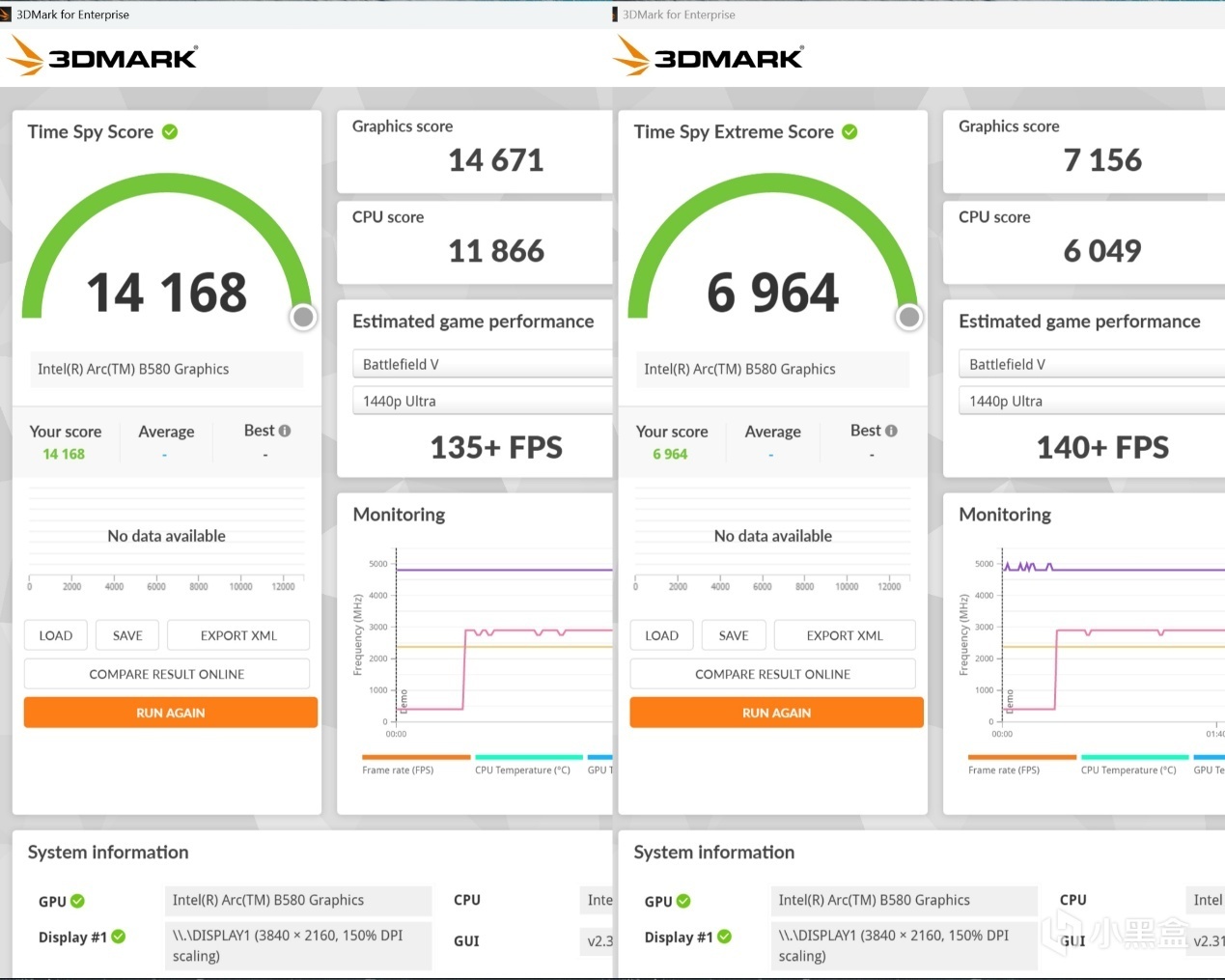 主機在3DMark Time Spy下的成績爲14168,其中CPU分數爲11866;在3DMark Time Spy Extreme下的成績爲6964,其中CPU分數爲6049。