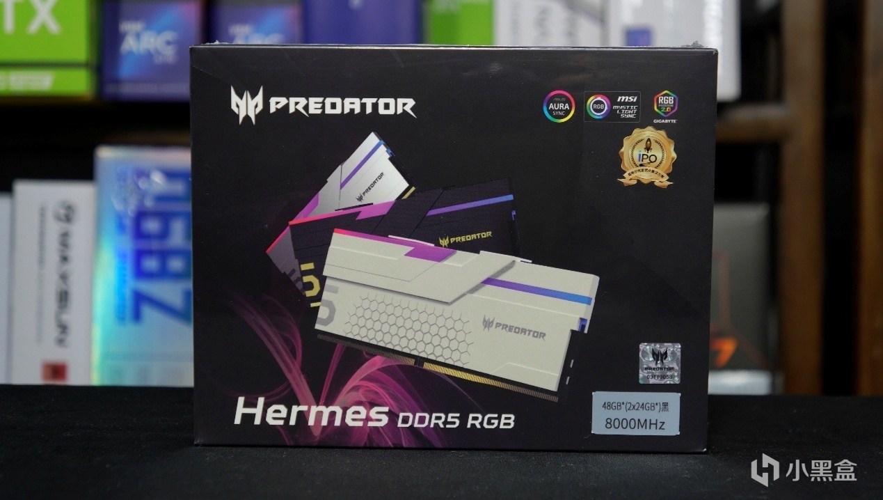內存條爲宏碁掠奪者Hermes 48GB套裝DDR5 8000 RGB燈條,支持XMP3.0和EXPO。宏碁掠奪者Hermes 48GB套裝DDR5 8000 RGB燈條採用的是新海力士M-Die顆粒,時序爲CL38-48-48-72,通過加強的十層PCB板和10um加厚金手指來保證超頻後的穩定運行以及強化電路信號傳輸。