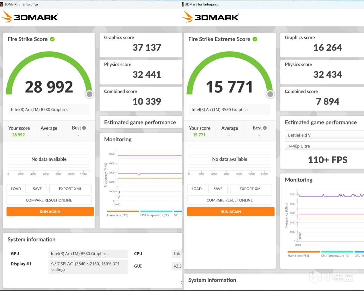 主機在3DMark Fire Strike下的成績爲28992,其中物理分數爲32441;在3DMark Fire Strike Extreme下的成績爲15771,其中物理分數爲32434。
